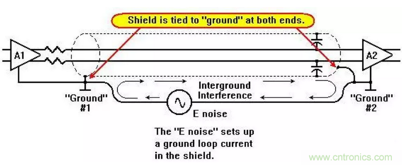 在實際應用中,屏蔽的目的是為了將感應到的電磁噪聲傳導到大地(Ground),成為噪聲信號的返回路徑,這一點至關重要。不了解其含義可能意味著無效的屏蔽。電纜屏蔽及其端接必須能夠為電磁噪聲提供一條低阻抗的接地路徑。未接地的屏蔽電纜將無法有效工作,而接地路徑中的任何斷點或過多的節(jié)點都會因為增加接地阻抗而降低線纜的屏蔽性能。