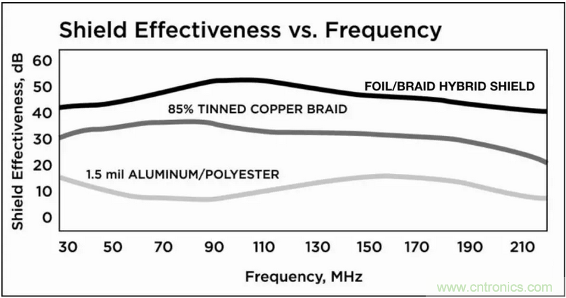 并且在任何一種情況下,電磁噪聲都不會直接傳遞到線路導體。 盡管有時噪聲能量仍然有可能穿過屏蔽層,但是通常已經有了很大程度的衰減,很難造成干擾影響。 因此,無論線纜本身是干擾源還是受擾對象,為其使用屏蔽都將是非常有效的。