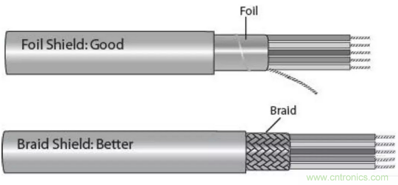 一般電纜的屏蔽會有兩種類型:金屬箔和編織網。