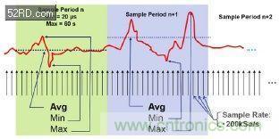 圖 3:數(shù)據(jù)記錄器:所有樣本均統(tǒng)一到連續(xù)的采樣周期中。無樣本丟失。對(duì)于每個(gè)采樣周期,還可提供最小值和最大值。