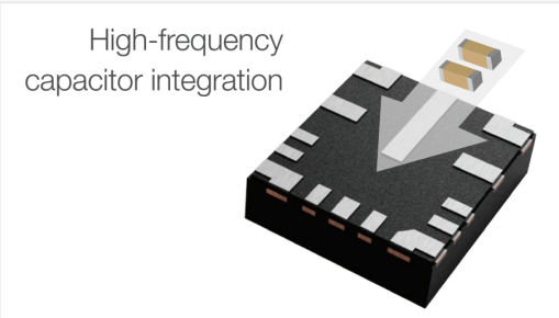 圖3:通過將高頻電容器集成到封裝內(nèi)部降低輻射噪聲。