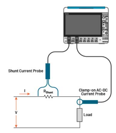 要測(cè)量電流,示波器必須配備能夠?qū)㈦娏鬓D(zhuǎn)換為電壓的探頭。電流轉(zhuǎn)換可以基于磁傳感器,也可以基于分流電阻器。兩種方法均可為示波器提供電壓信號(hào),且電壓信號(hào)可數(shù)字化并隨時(shí)間變化進(jìn)行顯示。