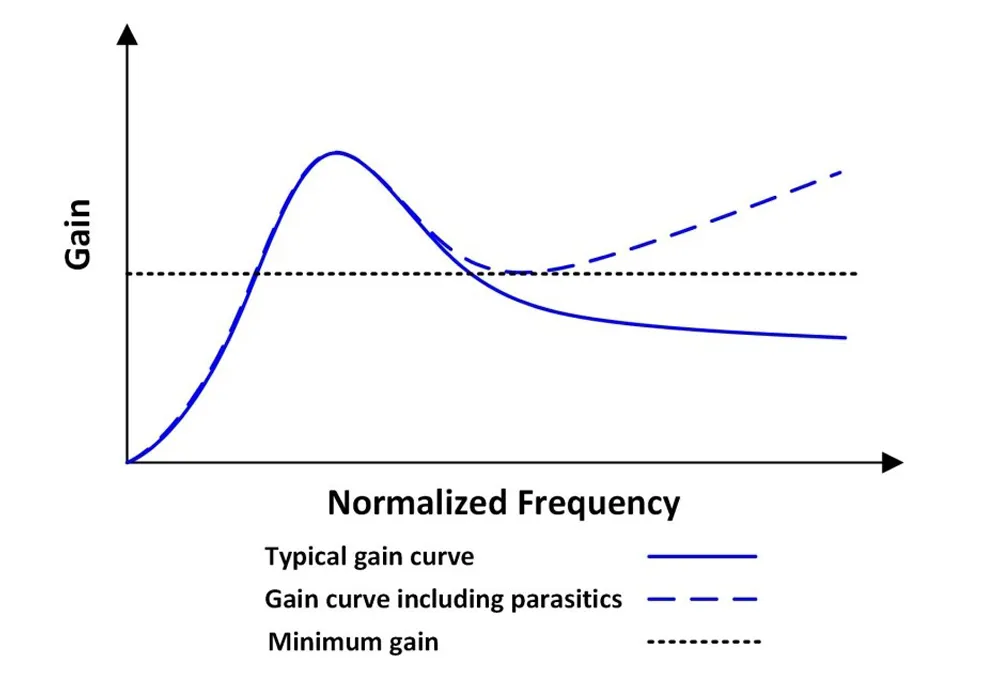 圖 3. 在禁用突發(fā)模式的情況下,增益曲線將開始在較高頻率處攀升