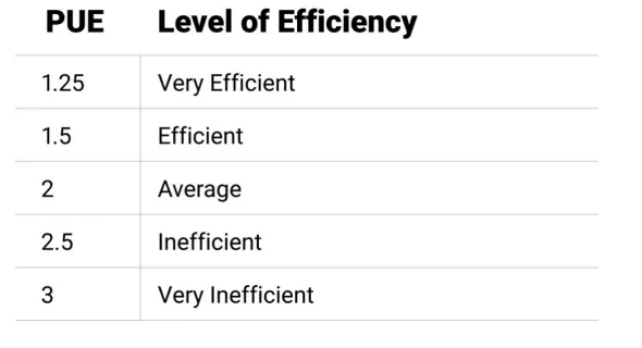 表 2. PUE 數(shù)值較低的數(shù)據(jù)中心具有高效率