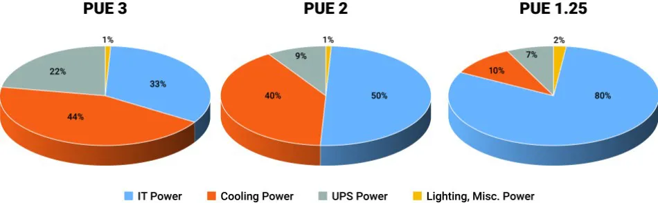 較高的工作溫度可降低服務(wù)器冷卻系統(tǒng)的能源成本。與數(shù)據(jù)中心的資本支出(如硬件設(shè)備)相比,隨著時間的推移,作為運營支出的能源成本預(yù)計會高于資本支出。根據(jù)電源使用效率 (PUE) 標(biāo)準(zhǔn):PUE = 數(shù)據(jù)中心總功率/IT 實際使用功率。
