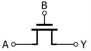 可以使用單個NMOS晶體管作為PTL開關(guān);當(dāng)施加到柵極的電壓為邏輯高時,開關(guān)被認(rèn)為是閉合的,而當(dāng)施加到柵極的電壓為邏輯低時,開關(guān)被認(rèn)為是打開的。下圖顯示了僅使用一個晶體管的與門(或至少類似于與門的東西)。