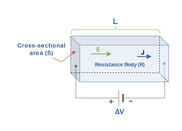 可以在基本原理中找到通過任意導(dǎo)電主體維持電流穩(wěn)定流動所需的電力。圖9顯示了連接到電勢差?V的長度“ L”和橫截面區(qū)域的電阻體。