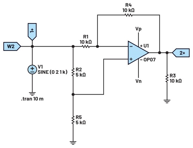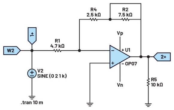 圖4.使用電位計的可變增益反相放大器