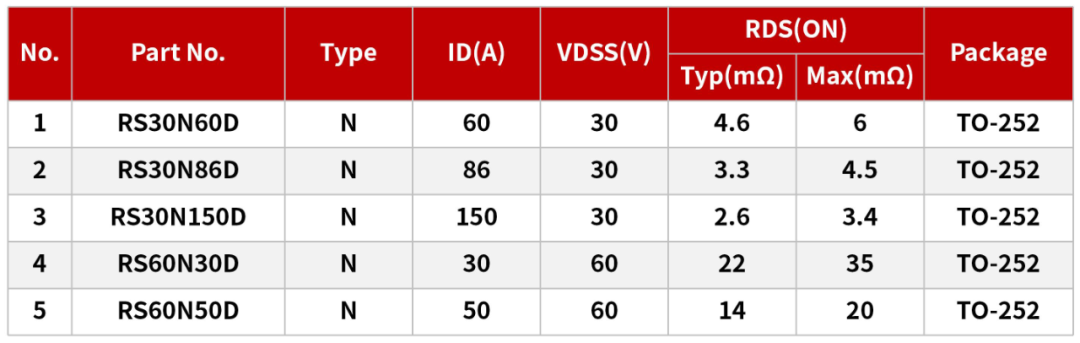 n Trench工藝,更小的Ronsp,串并聯(lián)隨意搭配。
