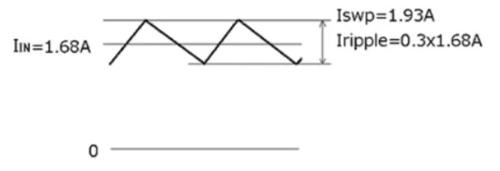 升壓型DC-DC轉(zhuǎn)換器對該1.68A的直流輸入電流進(jìn)行開關(guān),但輸入電流IIN是根據(jù)電感紋波電流IRIPPLE而增減的電流平均值。