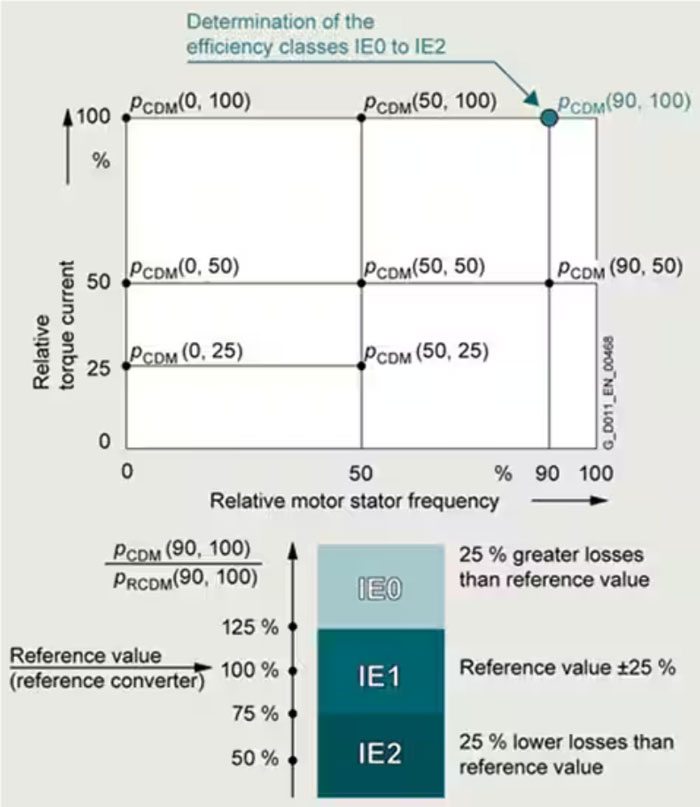 圖 2:IEC 61800-9 CDM 工作點和效率等級。(圖片來源:Siemens)