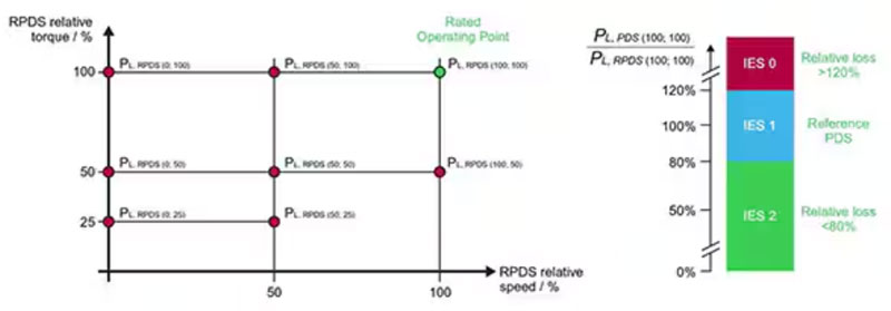 PDS 國際效率系統(tǒng) (IES) 等級與 CDM IE 等級類似,定義為 IES0 至 IES2。這些等級以參考 PDS (RPDS) 為基礎(chǔ),顯示完整驅(qū)動模塊和電機的效率。
