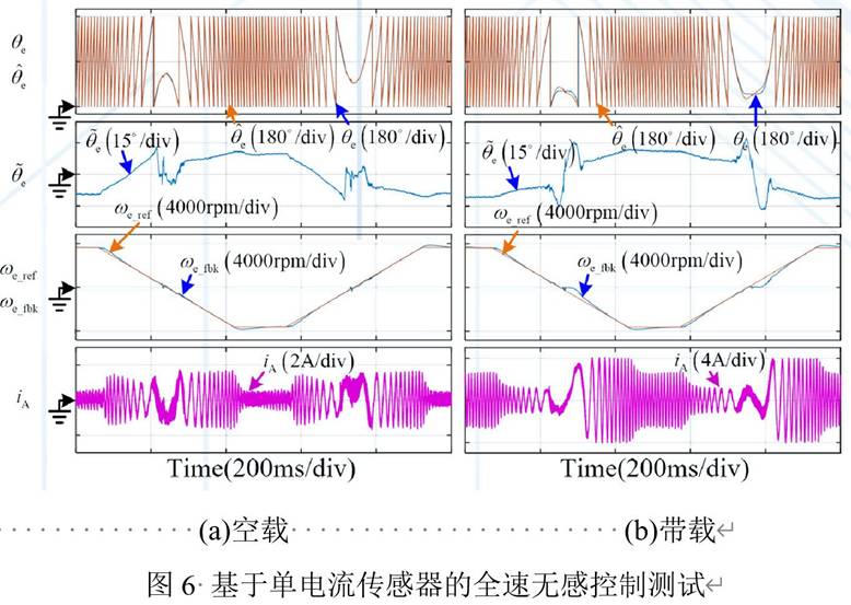 2)提出單母線電流采樣下的基準(zhǔn)邊沿對(duì)齊脈寬調(diào)制技術(shù)的全速無(wú)位置傳感器控制策略,零低速采用高頻方波注入位置估計(jì),并結(jié)合模型參考自適應(yīng)觀測(cè)器,實(shí)現(xiàn)了高動(dòng)態(tài)性能、高穩(wěn)態(tài)精度的全速范圍無(wú)位置傳感器控制;