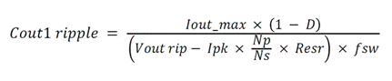 輸出電容通常選擇為方程式 18 或方程式 19 中的較大者,根據(jù)紋波電壓和等效串聯(lián)電阻(方程式 18)或負(fù)載瞬態(tài)響應(yīng)(方程式 19)計(jì)算電容: