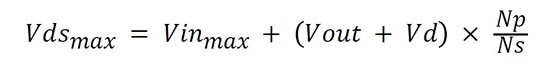 由于這些元件通常會(huì)因變壓器漏電感而產(chǎn)生振鈴, 因此根據(jù)經(jīng)驗(yàn),實(shí)際值應(yīng)比方程式 4 和方程式 5 預(yù)測(cè)值高出10% 至30%。如果 Vds_max 高于預(yù)期,則減小 Dmax 會(huì)降低 Vds_max, 但 VPIV_max 會(huì)增加。確定哪個(gè)元件電壓更為關(guān)鍵,并在必要時(shí)再次迭代。