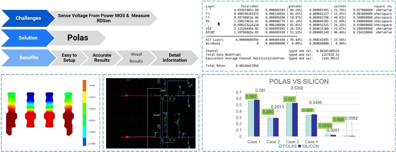 納芯微電子(NOVOSENSE Microelectronics)是一家高性能高可靠性模擬及混合信號芯片公司。公司采用Polas工具對模擬芯片設(shè)計進(jìn)行了RDSon分析,并結(jié)合完整的封裝級仿真,一方面獲取與實測結(jié)果高度匹配的仿真數(shù)據(jù),另一方面為Pillar、RDL及PCB設(shè)計提供了指導(dǎo),優(yōu)化了PCB走線電阻和芯片內(nèi)部走線電阻。