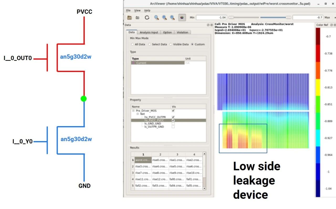 一家致力于Audio Power設(shè)計的臺灣PMIC公司,使用Polas工具中的Cross Monitor分析功能,對死區(qū)時間設(shè)計進(jìn)行了細(xì)致的合理性檢驗。該功能通過監(jiān)控PowerMOS上下管在高低導(dǎo)通狀態(tài)切換過程中的電流變化,能夠判斷設(shè)計中的死區(qū)時間設(shè)置是否得當(dāng)。這項分析為用戶提供了至關(guān)重要的反饋信息,指導(dǎo)他們對Power IC設(shè)計進(jìn)行優(yōu)化,從而提高了產(chǎn)品的可靠性和工作效率。