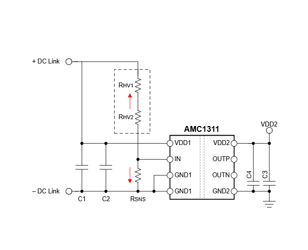 隨著高電壓汽車和工業(yè)設(shè)計的發(fā)展,人們對于精確、安全和高能效的電隔離電壓檢測設(shè)計的需求日益增長。AMC038x 產(chǎn)品系列是一組隔離式放大器和調(diào)制器,具有更高精度、增強集成和更強功能,可滿足這些要求。與使用外部電阻分壓器的傳統(tǒng)設(shè)計相比,這些器件采用集成高壓 (HV) 電阻,因此設(shè)計尺寸大大減小。要將電壓降至 1V 或 2V 電平,外部高壓電阻分壓器可能尺寸很大且成本高昂。此外,與分立式電阻相比,集成電阻具有非常低的溫度漂移和使用壽命漂移。因此,AMC038x 產(chǎn)品能夠在整個溫度范圍和使用壽命內(nèi)實現(xiàn)低于 1% 的精度,并且無需校準(zhǔn)。