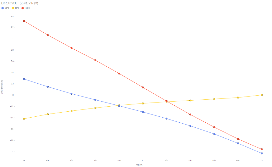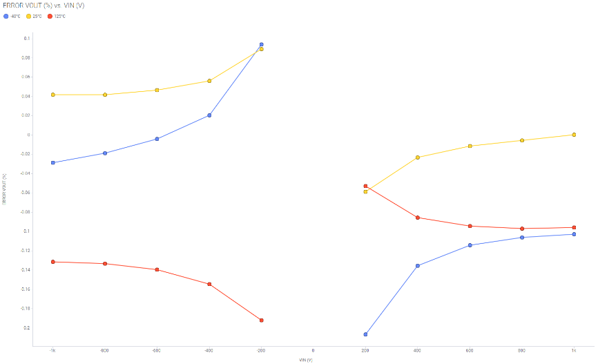 由于外部電阻可以朝相反方向變化,這相當(dāng)于總信號鏈誤差的 2/3 以上,額外增加 1%。因此,與高壓集成電阻產(chǎn)品不同,外部電阻設(shè)計很難在整個溫度范圍和使用壽命內(nèi)實現(xiàn)低于 1% 的精度。