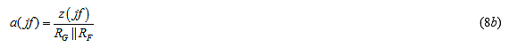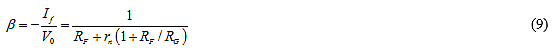 為了找出If,我們綜合一下Vo-RG-RF網絡,然后讓If=(0–VTh)/(rn+RTh),其中RTh=RG||RF,VTh=VoRG/(RG+RF)。通過代入和歸集后得到:
