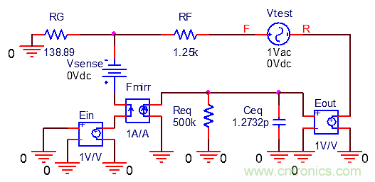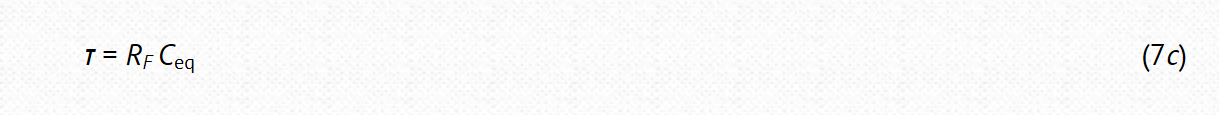 為了研究其瞬態(tài)行為,可以將電流反饋放大器看作一個純粹的R-C網絡(R=RF,C=Ceq),其中的電阻電流(Vi–Vo)/RF不是“直接”通過RF本身傳輸到Ceq,而是通過電流反射鏡“間接地”完成。只要與時間常數: