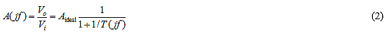 換句話說,ft是|T(jf)|下降到單位1或0dB時的頻率。因此根據公式(2),ft代表閉環(huán)增益的-3dB頻率,也稱為閉環(huán)帶寬。