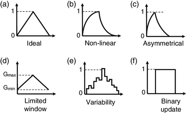 例如基于ReRAM的神經(jīng)形態(tài)陣列的主要挑戰(zhàn)之一是器件的可變性,這是由電阻開關(guān)過程固有的隨機(jī)性和不均勻性引起的。設(shè)備可變性會影響神經(jīng)計(jì)算的準(zhǔn)確性和穩(wěn)定性,并導(dǎo)致性能下降甚至故障。因此,了解設(shè)備可變性的來源和影響并開發(fā)減輕或利用它的方法非常重要。例如,可以通過優(yōu)化器件制造工藝、設(shè)計(jì)參數(shù)和操作條件來減少器件可變性。或者,器件可變性可以用作隨機(jī)性或多樣性的來源,以增強(qiáng)神經(jīng)形態(tài)系統(tǒng)的功能和適應(yīng)性。