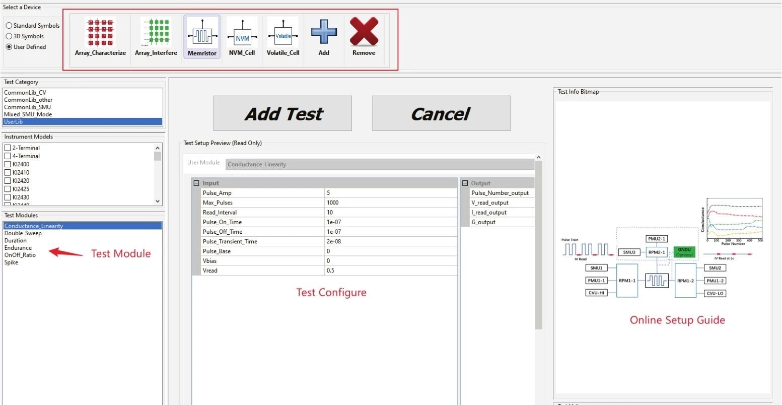 為了降低神經(jīng)形態(tài)器件和陣列測試的復(fù)雜度,手動測試對于精度的影響,以及提高測試效率和可重復(fù)性,Tektronix公司提供了統(tǒng)一的器件和陣列集成化測試平臺TMAS套件,包含ACS-BASIC和器件陣列測試模塊。