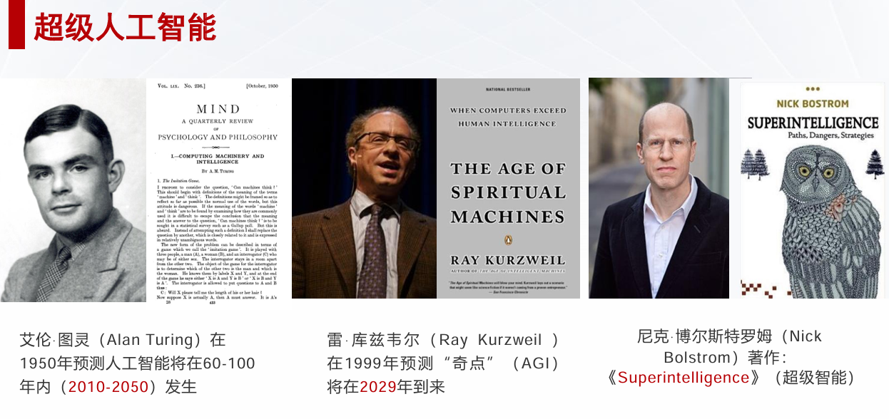 1950年圖靈曾預(yù)測,在60年至100年之內(nèi),即2010年至2050年之間,超級人工智能可能會出現(xiàn)。而庫茲韋爾則進(jìn)一步預(yù)測,這一變革可能在本世紀(jì)二十年代發(fā)生。