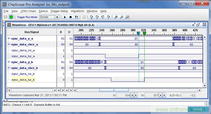 通過啟用或禁用FIFO輸出,控制模塊可以維持FIFO電平以盡量減少像素對齊誤差。如果采取了正確的補償措施,則FPGA模塊的輸出應(yīng)為與第一個像素對齊的兩條數(shù)據(jù)路徑。然后該數(shù)據(jù)提供給FPGA后端,以生成3D格式。
