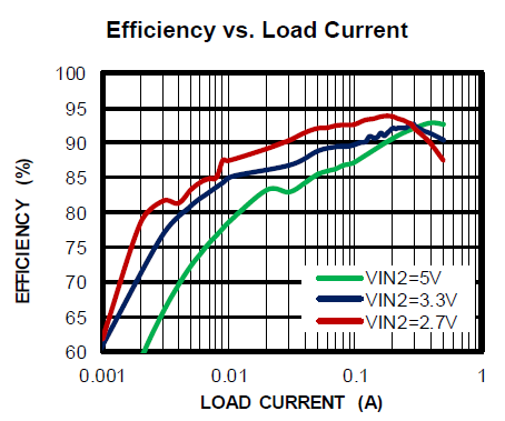 圖6: MP5461的效率與負(fù)載電流