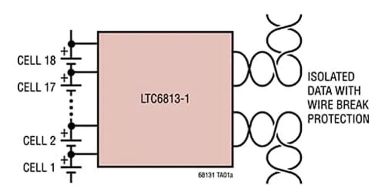 圖 9:LTC6813-1 可支持的最多電池單元 (18),并采用了 16 位 ADC 來實現(xiàn) 2.2 mV 的精度和高速電池單元掃描能力。(圖片來源:Analog Devices, Inc.)
