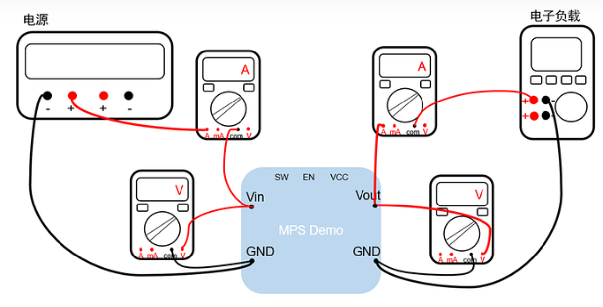 高精度的測(cè)試設(shè)備是確保測(cè)試結(jié)果準(zhǔn)確性的關(guān)鍵。常用的測(cè)試設(shè)備包括電源、電子負(fù)載、多用表、功率分析儀等。這些設(shè)備能夠精確測(cè)量輸入電壓、電流、輸出電壓、電流以及轉(zhuǎn)換效率。根據(jù)上述描述,我們可以搭建整個(gè)系統(tǒng)如下: