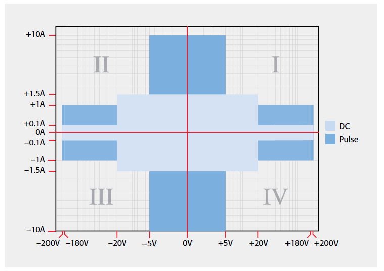 使用源表進(jìn)行效率測(cè)試,能夠大大簡(jiǎn)化測(cè)試流程并提高測(cè)量的精度。源表集成了電壓和電流的源與測(cè)試功能,可以工作在4個(gè)象限,并且同時(shí)進(jìn)行電壓、電流的測(cè)量,減少了傳統(tǒng)方法中需要多臺(tái)測(cè)試設(shè)備的復(fù)雜性。Keithley提供高精度的源表產(chǎn)品,適用于各種電源性能測(cè)試。