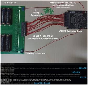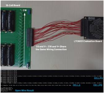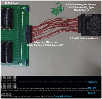 本文介紹的所有算法均已集成并整合到LTC6813開路檢測(cè)偽代碼示例中,如圖13所示,僅供參考。此外,這里還給出了開路檢測(cè)的一些實(shí)驗(yàn)結(jié)果。圖14至圖17的結(jié)果是在對(duì)LTC6813評(píng)估板電路的實(shí)際開路檢測(cè)實(shí)驗(yàn)獲得的。實(shí)驗(yàn)所采用的開路檢測(cè)算法是基于本文所介紹算法的組合;開路功能的驅(qū)動(dòng)代碼是基于所提供的偽代碼編寫。從實(shí)驗(yàn)結(jié)果可以看出,在設(shè)定的條件下,所有開路情況(即使存在多處開路)都可以被準(zhǔn)確檢測(cè)出來,包括數(shù)量和位置。也就是說,本文所述的開路檢測(cè)算法既準(zhǔn)確,又可靠。