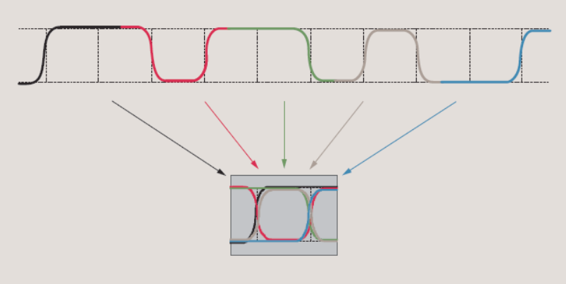 圖 1. 眼圖是由所有 bits 堆疊而形成的圖樣,包含所有 bits 的信號完整性信息
