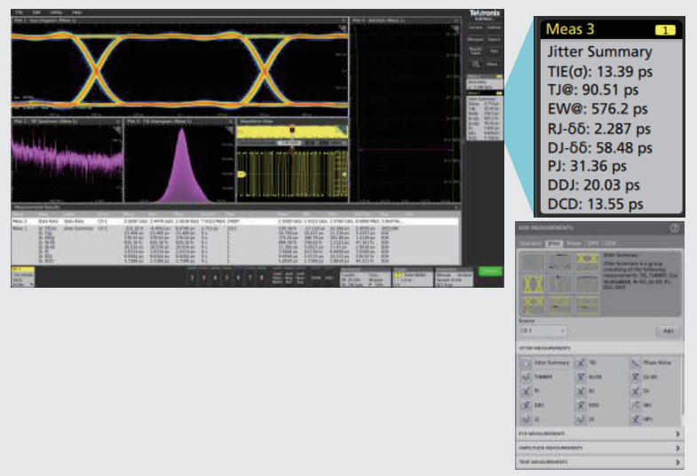 圖 6. 泰克公司的 DJA 抖動和眼圖分析軟件豐富的測量項和分析窗口