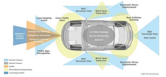 來(lái)自TE Connectivity的數(shù)據(jù)顯示,采用最新ADAS/AV技術(shù)的車輛,即使是典型的非電動(dòng)汽車,均需要配備60到100個(gè)車載傳感器,其中的15到30個(gè)專門用于管理發(fā)動(dòng)機(jī)。商用卡車配備的傳感器更是多達(dá)400個(gè),用于發(fā)動(dòng)機(jī)管理的傳感器約有70個(gè)。預(yù)計(jì)未來(lái)幾代電動(dòng)汽車,特別是那些配備了自動(dòng)或半自動(dòng)駕駛功能的電動(dòng)汽車,其傳感器數(shù)量很可能是其他車型的兩到三倍。