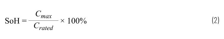 SoH表示健康狀態(tài),定義為相對于電池額定容量 (Cmax) 的電池最大可釋放容量 (Cmax)。
